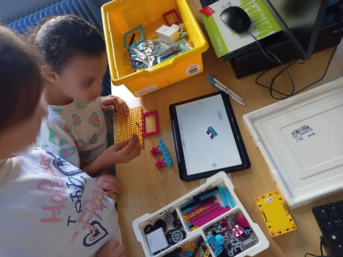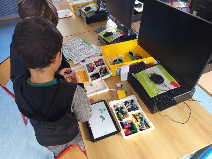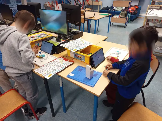 Nous avons mené trois ateliers d’initiation à la robotique auprès d’élèves de CM1 et CM2, avec des groupes d’environ 14 enfants. À travers différentes activités, les élèves ont pu découvrir, manipuler et expérimenter les briques LEGO ainsi que les programmes sur tablette, en explorant de multiples possibilités de programmation.