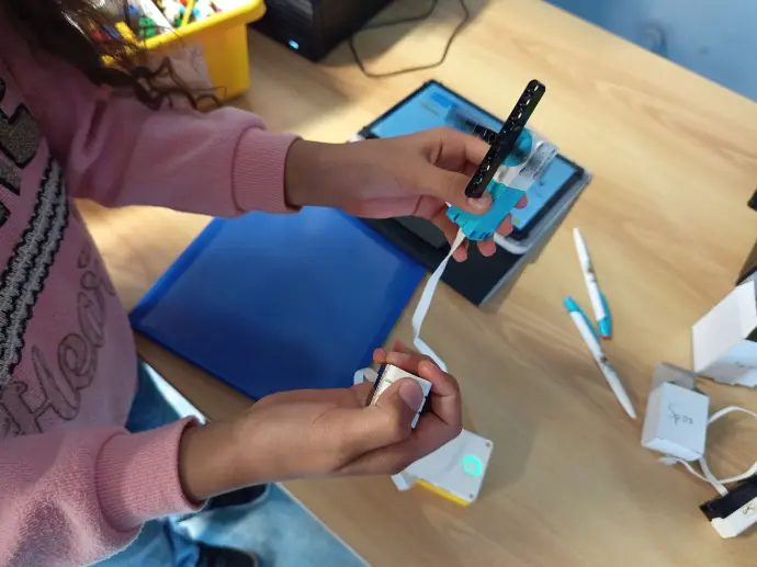 Lors de cet atelier, les enfants ont exploré les différents capteurs et moteurs afin de comprendre leur rôle et leur programmation. Ils ont testé les effets de plusieurs paramètres (vitesse, distance, couleur, angle, déclenchement d’une action, etc.).