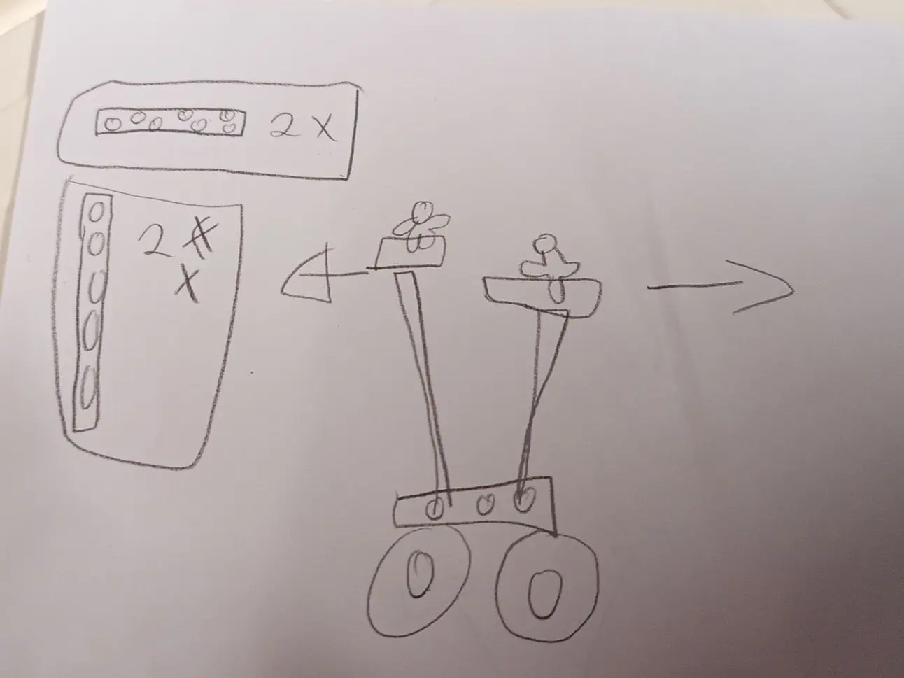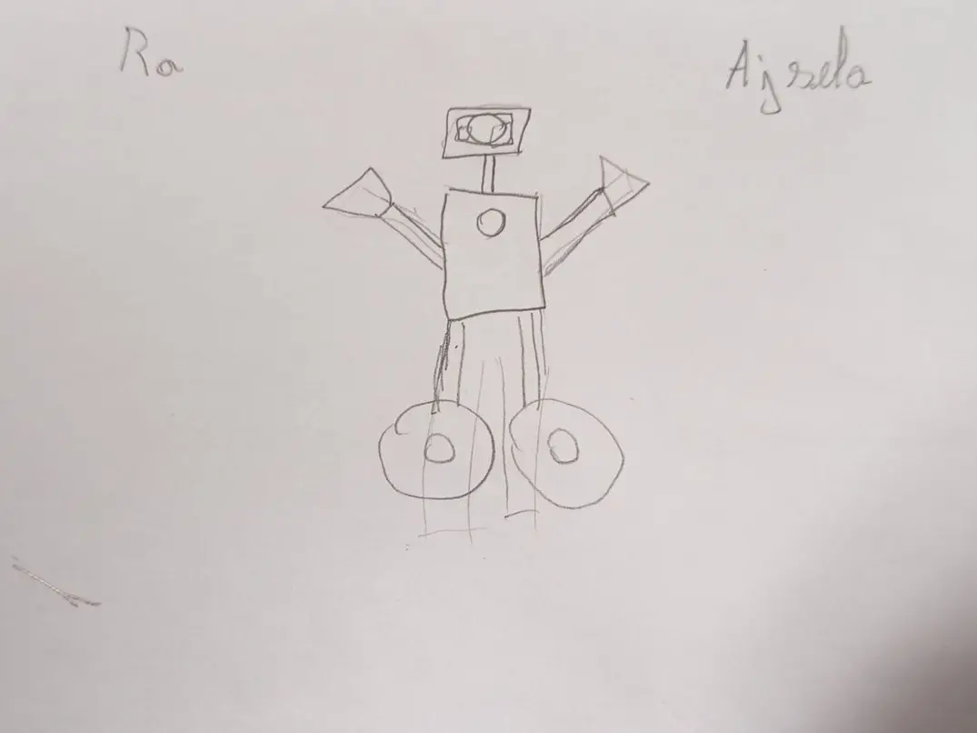 Lors de cet atelier, les enfants ont été invités à concevoir un robot librement, sans modèle imposé. Avant de construire, ils ont d’abord réalisé un schéma sur papier, représentant la forme de leur robot, ses éléments principaux et son fonctionnement.